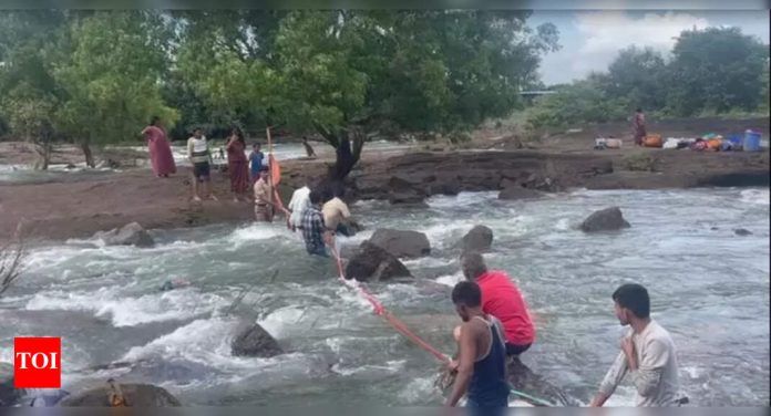 पुणे – अग्निशमन दल आणि नांडेड शहर पोलिस कर्मचार्‍यांनी रविवारी खडकवासला धरणाच्या भिंतीजवळील मुथ नदीतून 30 जणांना जलाशयातून पाण्याचे पाण्याचे पाण्याचे पाण्याचे प्रमाण शोधून काढले.धरणातून पाणी सोडण्यात आले तेव्हा सर्व पुरुष आणि स्त्रियांनी नदीच्या जवळपास मध्यभागी बेडशीट आणि इतर वस्त्र धुण्यासाठी प्रतिक्रिया व्यक्त केली होती. पोलिस आणि अग्निशमन दलाच्या पथकांनी जवळच्या रस्त्यावरील झाडे आणि खांबावर दोरी बांधल्या आणि नदीच्या बाहेर येण्यास मदत केली.दरवर्षी नवरात्रा उत्सवापूर्वी खडकवासला, नारही, धायरी, उत्तमनागर, शिवने आणि शिवने व इतर जवळील लोक बेशेट धुण्यासाठी आणि इतर कपड्यांमध्ये धरणाच्या जागेवर भेट देतात. नांडेड सिटी पोलिसांचे वरिष्ठ निरीक्षक अतुल भोस यांनी टीओआयला सांगितले की, “सायंकाळी साडेतीनच्या सुमारास, बरेच लोक खडकवासला धरणांच्या भागात आपले बेडशीट आणि इतरांना धुवायला गेले. नदीकाठी खडकावर सूर्याखाली कोरडे.”ते म्हणाले: “जेव्हा लोक धरणाच्या भिंतीजवळ नदीकाठच्या भागात प्रवेश करतात तेव्हा पाणी नव्हते. परंतु सिंचन अधिका authorities ्यांनी धरणातून थोडेसे पाणी सोडले असता, नदीचे काही भाग, नदीचे काही भाग झाकून, नदीचे कटिंग्ज, उत्तेजनगर आणि खडकवासला या रस्त्याच्या दिशेने जाणा .्या रस्त्याच्या दिशेने जाणा .्या रस्त्यावरुन, लोकांचा वेगळा भाग होता.सिंचन विभागाने सांगितले की, नागरिकांना पाणी सोडण्याविषयी माहिती देण्यात आली. “आम्ही पोलिसांकडूनही पाठिंबा मागितला होता आणि नागरिकांना सतत चेतावणी देण्यात आली. खडकवासला धरणातून सुरक्षा उपायांचा एक भाग म्हणून आणि दरवाजेला कोणतेही प्रश्न टाळण्यासाठी. पाण्याचे स्त्राव वाढ फारच जास्त नव्हते. खडकवासला धरण कार्यालयातील एका वरिष्ठ अधिका said ्याने सांगितले की, ते 850 क्युसेक्समधून सुमारे 1,300 क्युसेकमध्ये वाढविण्यात आले.एका पोलिस अधिका said ्याने सांगितले की, रविवारी बरेच लोक धरणाच्या जागेवर गेले होते. उन्हात लांब अंतर झाल्यानंतर सकाळी आणि दुपारी वाहतुकीची कोंडी होते. एका पोलिस पथकाला साइट आणावी लागली आणि रहदारी साफ करावी लागली.