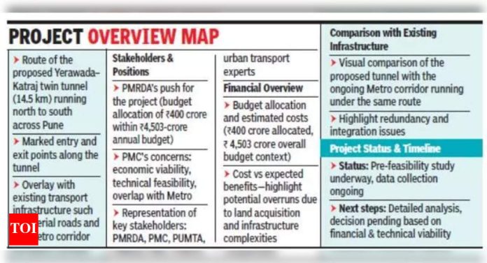 Homeदेश-विदेशपीएमसीच्या चिंता असूनही, पीएमआरडीए येरवाडा-कटराज ट्विन बोगद्याच्या प्रकल्पाच्या पूर्व-कार्यक्षमतेच्या अभ्यासासह पुढे जाईल