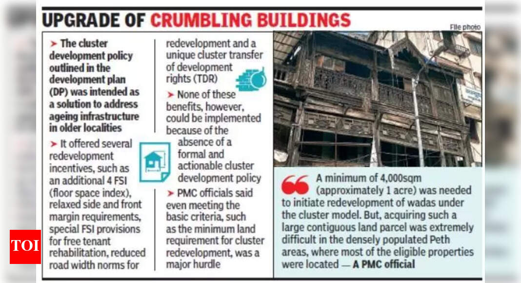 पुणे : सुमारे आठ वर्षांपूर्वी प्रस्तावित, शहरातील जुने वाडे आणि मोडकळीस आलेल्या इमारतींचा पुनर्विकास करण्याच्या उद्देशाने क्लस्टर डेव्हलपमेंट उपक्रमात अत्यल्प प्रगती झाली आहे, अशी पुणे महापालिकेची आकडेवारी आहे. कॉर्पोरेशनने (पीएमसी) खुलासा केला आहे.52 गृहनिर्माण सोसायट्या आणि 800 हून अधिक सदनिका असलेल्या लोकमान्यनगर येथील रहिवाशांच्या विरोधानंतर हा मुद्दा पुन्हा चर्चेत आला आहे. 1960 च्या दशकात बांधल्या गेलेल्या यापैकी अनेक इमारती आता जुन्या पायाभूत सुविधांशी झुंजत आहेत – भेगा पडलेल्या भिंती, अनियमित पाणीपुरवठा आणि खराब ड्रेनेज सिस्टीम ही सामान्य समस्या आहेत.कसबा पेठचे आमदार हेमंत रासणे म्हणाले, क्लस्टर डेव्हलपमेंटला प्रतिसाद मिळत नसल्याने अनेक मालमत्तांचे नुकसान होत आहे. मालमत्ता लढाईत अडकल्यास किंवा वर्षानुवर्षे दुर्लक्षित राहिल्यास सक्तीच्या अधिग्रहणासारखे पर्याय शोधले पाहिजेत. प्लॉट आकाराची किमान आवश्यकता सुमारे 1000sq.m असावी.” पेठ परिसरातील रहिवासी अभय जोशी म्हणाले की, मोडकळीस आलेल्या इमारतींमध्ये राहणारे अनेक रहिवासी, विशेषत: भाडेकरू हे आर्थिकदृष्ट्या दुर्बल घटकातील आहेत. “काहींना इतरत्र भाड्याने घरे देणे परवडत नाही. धोरणकर्त्यांनी वृद्धत्वाच्या मालमत्तांच्या पुनर्बांधणीला गती देण्यासाठी सक्रिय पावले उचलली पाहिजेत,” असे ते पुढे म्हणाले.पीएमसीच्या बांधकाम परवानगी विभागाचे वरिष्ठ अधिकारी अमोल बहाडकर म्हणाले की त्यांनी गर्दीच्या ठिकाणांसाठी क्लस्टर डेव्हलपमेंटचे फायदे अधोरेखित करण्यासाठी जनजागृती मोहीम राबवली आहे. “तथापि, अद्यापपर्यंत पीएमसीकडे कोणतेही औपचारिक प्रस्ताव सादर केलेले नाहीत. त्याऐवजी, लहान मालमत्तांचे मालक वैयक्तिक बांधकाम परवानग्या मागत आहेत,” ते पुढे म्हणाले.एकाच पुनर्विकास योजनेंतर्गत अनेक वाड्यांचे एकत्रीकरण करण्यात अडचण येत असल्याचे नागरी अधिकाऱ्यांनी मान्य केले. “सर्व मालक आणि भाडेकरूंकडून संमती मिळवणे आव्हानात्मक आहे आणि अनेक मालमत्ता कायदेशीर वादात अडकल्या आहेत. क्लस्टर डेव्हलपमेंटच्या केंद्रस्थानी असलेल्या एकाच परिसरातील अनेक वाडे पाडून जमीन एकत्र करणे. धोरण हे कठीण काम असल्याचे सिद्ध होत आहे,” असे आणखी एका अधिकाऱ्याने सांगितले.अधिकारी म्हणाले, “पीएमसी युनिफाइड डेव्हलपमेंट कंट्रोल अँड प्रमोशन रेग्युलेशन (यूडीसीपीआर) अंतर्गत क्लस्टर पुनर्विकासाला चालना देत आहे. परंतु भाडेकरू आणि मालक यांच्यातील मतभेद महत्त्वपूर्ण अडथळे निर्माण करत आहेत. आम्ही जागरूकता वाढवण्यासाठी आणि उपक्रमाभोवती एकमत निर्माण करण्यासाठी काम करत आहोत.”मोडकळीस आलेल्या इमारतींचे अपग्रेडेशन विकास आराखडा (D