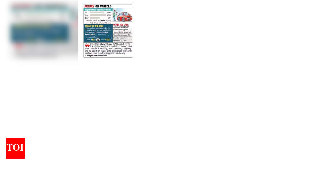 पुणे: खराब रस्ते, खड्डे आणि न संपणारे खड्डे यामुळे हायएंड गाड्या घेण्यासाठी पुणेकरांची गर्दी कमी झालेली दिसत नाही.पुणे प्रादेशिक परिवहन कार्यालयाने (RTO) प्रदान केलेल्या आकडेवारीनुसार, या वर्षी जानेवारी ते सप्टेंबर दरम्यान, उच्च श्रेणीतील कार मॉडेल्सची (ज्यांची किंमत 70 लाख किंवा त्याहून अधिक आहे) गेल्या वर्षीच्या याच कालावधीच्या तुलनेत 13% नी वाढली आहे. पुण्यातील उपप्रादेशिक परिवहन अधिकारी स्वप्नील भोसले यांनी TOI ला सांगितले की, यावर्षी शहरात अशा 844 कारची नोंदणी झाली आहे. गेल्या वर्षी याच कालावधीत अशा 745 हाय-एंड कार होत्या. “आकडे प्रभावी आहेत, आणि नोंदणी वाढण्याची अपेक्षा आहे,” भोसले म्हणाले.या वर्षी, आतापर्यंत नोंदणीकृत सर्वात महाग कार रोल्स रॉयस कलिनन होती, जी 9 एप्रिल रोजी नोंदणीकृत झाली होती, ज्याची किंमत 12 कोटी रुपये होती. तथापि, हे आणि Aston Martin DBX 707, आणखी एक Rolls Royce Cullinan, आणि Bentley Bentayga V8 सारखी इतर काही मॉडेल्स वगळता, नोंदणीकृत बहुतेक मॉडेल्स मर्सिडीज, BMW, रेंज रोव्हर, टोयोटा इ.ची अनेक मॉडेल्स आहेत. मागील वर्षी, याच कालावधीत, सर्वात महागड्या कारची नोंदणी झाली होती, ज्याची किंमत C Roullin 9 3 रुपये होती. कोटी“दसरा, धनत्रयोदशी आणि दिवाळी यांसारख्या सणांमध्ये, लोकांचा प्रामुख्याने वाहनांसह नवीन वस्तू खरेदी करण्याकडे कल असतो. गेल्या वर्षी, पुण्यात उच्च श्रेणीतील वाहनांची एकूण नोंदणी 2023 च्या 1,158 विरुद्ध 1,360 होती. या वर्षी, आम्ही नोंदणीत गेल्या वर्षीचा विक्रम मोडेल अशी अपेक्षा करत आहोत, “ओटीओसाठी आणखी एक अधिकृत आकडा जोडला गेला. संकलितहाय-एंड कार मॉडेल्सवरील GST 40% वर सुधारित केल्यामुळे, उत्पादकांचा असा विश्वास होता की यामुळे किमतीत वाढ होणार नाही, ज्यामुळे नोंदणीवर परिणाम होईल. “पुणे, मर्सिडीज-बेंझ इंडियाचे होम टर्फ असल्याने, एक महत्त्वाची बाजारपेठ आहे, ज्यामध्ये एकनिष्ठ ग्राहकांचा मजबूत आधार आहे. पुण्याच्या सततच्या आर्थिक वाढीमुळे, अधिक यशस्वी उद्योजक, व्यावसायिक, पगारदार अधिकारी आणि तरुण व्यावसायिक आता पूर्वीपेक्षा मर्सिडीज-बेंझ कार खरेदी करत आहेत. लक्झरी ऑटोमोटिव्ह मागणीमध्ये हा वाढीचा कल येत्या काही वर्षांतही कायम राहण्याची आम्हाला अपेक्षा आहे,” मर्सिडीज-बेंझ इंडियाचे एमडी आणि सीईओ संतोष अय्यर यांनी TOI ला सांगितले.“GST 2.0 चे तर्कसंगतीकरण केल्यामुळे, आम्ही सर्वसाधारणपणे ग्राहकांच्या भावना आणि विशेषतः ऑटोमोबाईल्ससाठी ग्राहकांच्या उच्च क्रयशक्तीसह वाढण्याची अपेक्षा करतो. या GST पुनर्रचनेने ऑटोमोटिव्ह विभागासाठी बहुप्रतिक्षित टेलविंड आणले आहे आणि त्यामुळे ग्राहकांच्या संकोच दूर झाल्यामुळे उच्च नोंदणी झाली पाहिजे,” ते पुढे म्हणाले.पूर्वीच्या शासनामध्ये, जीएसटी 28% होता, अ