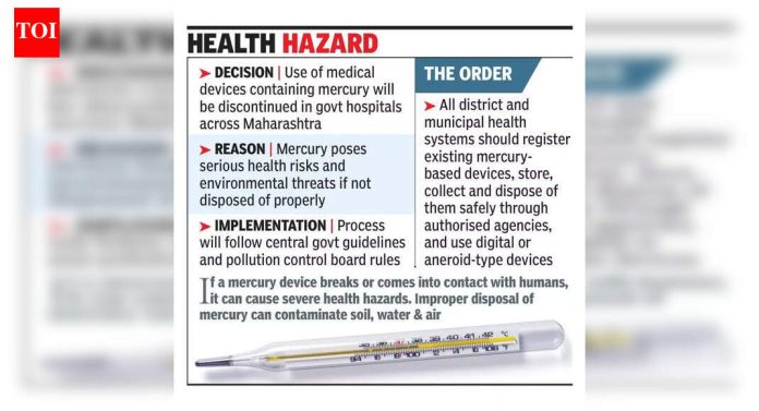 पुणे: रुग्ण, आरोग्य कर्मचारी आणि पर्यावरणाचे रक्षण करण्यासाठी राज्याच्या आरोग्य विभागाने सरकारी रुग्णालयांना थर्मामीटर आणि पारंपारिक स्फिग्मोमॅनोमीटरसह पारा-आधारित वैद्यकीय साधनांचा वापर बंद करण्याचे निर्देश दिले आहेत.विभागाने 26 डिसेंबर 2025 रोजी जिल्हा आणि नगरपालिका आरोग्य यंत्रणांना पारा-मुक्त डिजिटल आणि इलेक्ट्रॉनिक उपकरणांसारखे सुरक्षित पर्याय अवलंबण्याचे निर्देश दिले. “पारा-आधारित वैद्यकीय उपकरणे लवकरच सरकारी आरोग्य संस्थांमधून टप्प्याटप्प्याने बंद केली जातील. आरोग्य संस्थांना नवीन पारा-अनुदानित उपकरणे खरेदी करण्यास सक्त मनाई करण्यात आली आहे. डिजिटल किंवा एनरोइड (द्रवविरहित) पर्यायांचा वापर करण्याची शिफारस करण्यात आली आहे,” डॉ संदीप सांगळे, कुटुंब आणि माता आरोग्य, राज्य आरोग्य विभागाचे अतिरिक्त संचालक, राज्य आरोग्य विभाग, यांनी सांगितले.ते म्हणाले, “केंद्रीय आरोग्य विभागाने राज्य सरकारला मार्गदर्शक तत्त्वे जारी केली आहेत, त्यानंतर आम्ही सर्व जिल्हा शल्यचिकित्सक, वैद्यकीय महाविद्यालये, जिल्हा आणि उपजिल्हा रुग्णालये आणि ग्रामीण आणि शहरी आरोग्य सुविधांना सूचना पाठविल्या आहेत,” ते म्हणाले.परिपत्रकानुसार, सध्या वापरात असलेली सर्व पारा-आधारित उपकरणे नोंदणीकृत आणि सुरक्षितपणे संग्रहित करणे आवश्यक आहे. “त्यांचे संकलन आणि विल्हेवाट केंद्र सरकारच्या मार्गदर्शक तत्त्वांचे आणि प्रदूषण नियंत्रण मंडळाच्या नियमांचे पालन करून अधिकृत एजन्सीमार्फत केली जाईल,” डॉ सांगळे म्हणाले.पुणे महानगरपालिकेच्या (पीएमसी) आरोग्य सुविधा या निर्देशाचे पालन करत आहेत. “जर पारा यंत्र तुटला किंवा माणसांच्या संपर्कात आला तर त्यामुळे गंभीर आरोग्य धोक्यात येऊ शकतात. पाराची अयोग्य विल्हेवाट लावल्याने माती, पाणी आणि हवा दूषित होऊ शकते, ज्यामुळे पर्यावरणाला महत्त्वपूर्ण धोका निर्माण होऊ शकतो. हा निर्णय रुग्ण, आरोग्य सेवा कर्मचारी आणि पर्यावरणाच्या सुरक्षेला प्राधान्य देतो,” डॉ राजेश दिघे, सहाय्यक आरोग्य अधिकारी, PMC म्हणाले.