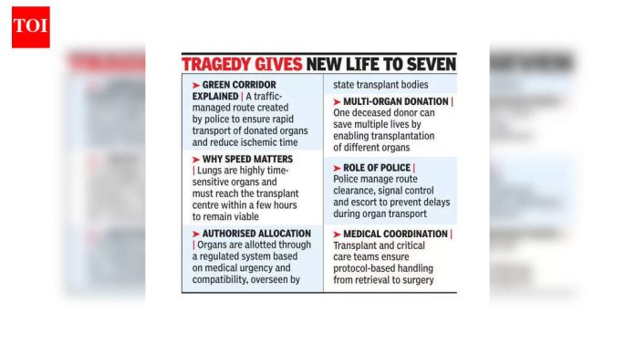 पुणे: 29 डिसेंबर 2025 रोजी जालना दुचाकी अपघातात 25 वर्षीय बीएचएमएस विद्यार्थ्याच्या अकाली मृत्यूने त्याच्या कुटुंबाचे हृदय तुटले, परंतु त्यांनी अवयव दानासाठी संमती देण्याचे बळ एकवटले ज्यामुळे पुण्यातील रुग्णाला पुन्हा स्वतःचा श्वास घेता आला नाही, तर विविध शहरांमध्ये आणखी सहा आजारी लोकांना जीवदान मिळाले.1 जानेवारी रोजी पुण्यातील रुग्णावर डीपीयू सुपर स्पेशालिटी हॉस्पिटलमध्ये फुफ्फुस प्रत्यारोपणाची शस्त्रक्रिया करण्यात आली. प्रत्यारोपणाचा मार्ग अधिकृत वाटप प्रक्रियेअंतर्गत पुढे जाण्यासाठी ग्रीन कॉरिडॉरद्वारे जालन्याहून अवयव पुण्याला हस्तांतरित करण्यात आले.