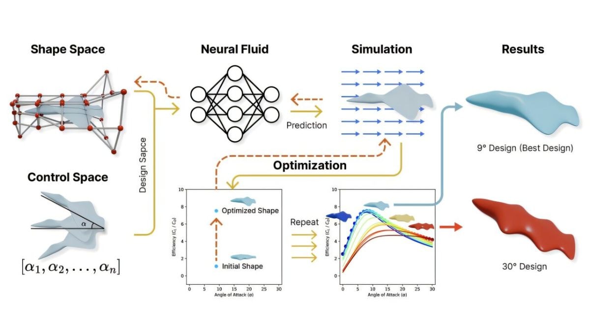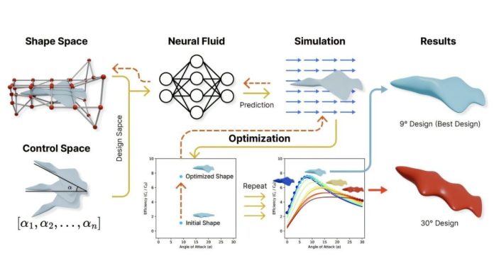 अ नुसार अभ्यास आर्क्सिव्ह प्रीप्रिंट सर्व्हरवर प्रकाशित, टीमने असंख्य कादंबरी 3 डी ग्लायडर आकार तयार करण्यासाठी आणि त्याचे अनुकरण करण्यासाठी मशीन लर्निंगचा वापर केला. डिजिटल बदललेल्या आवृत्त्यांसह पाणबुडी आणि शार्क यासारख्या पारंपारिक मॉडेल्सची तुलना करून, त्यांचे अल्गोरिदम हे शिकले की वेगवेगळ्या डिझाईन्स वेगवेगळ्या “कोनात-आक्रमण” वर कसे वागतात. त्यानंतर न्यूरल नेटवर्कने प्रत्येक आकाराच्या लिफ्ट-टू-ड्रॅग रेशोचे मूल्यांकन केले, जे पाण्याद्वारे कार्यक्षमतेने सरकतात अशा लोकांची ओळख पटली. हे आकार नंतर उर्जेचा वापर कमी करणार्या हलके वजनाच्या सामग्रीचा वापर करून बनावटीचे होते.